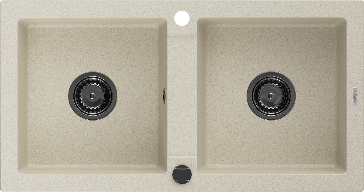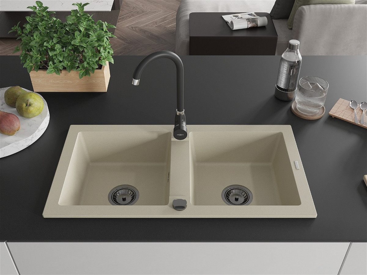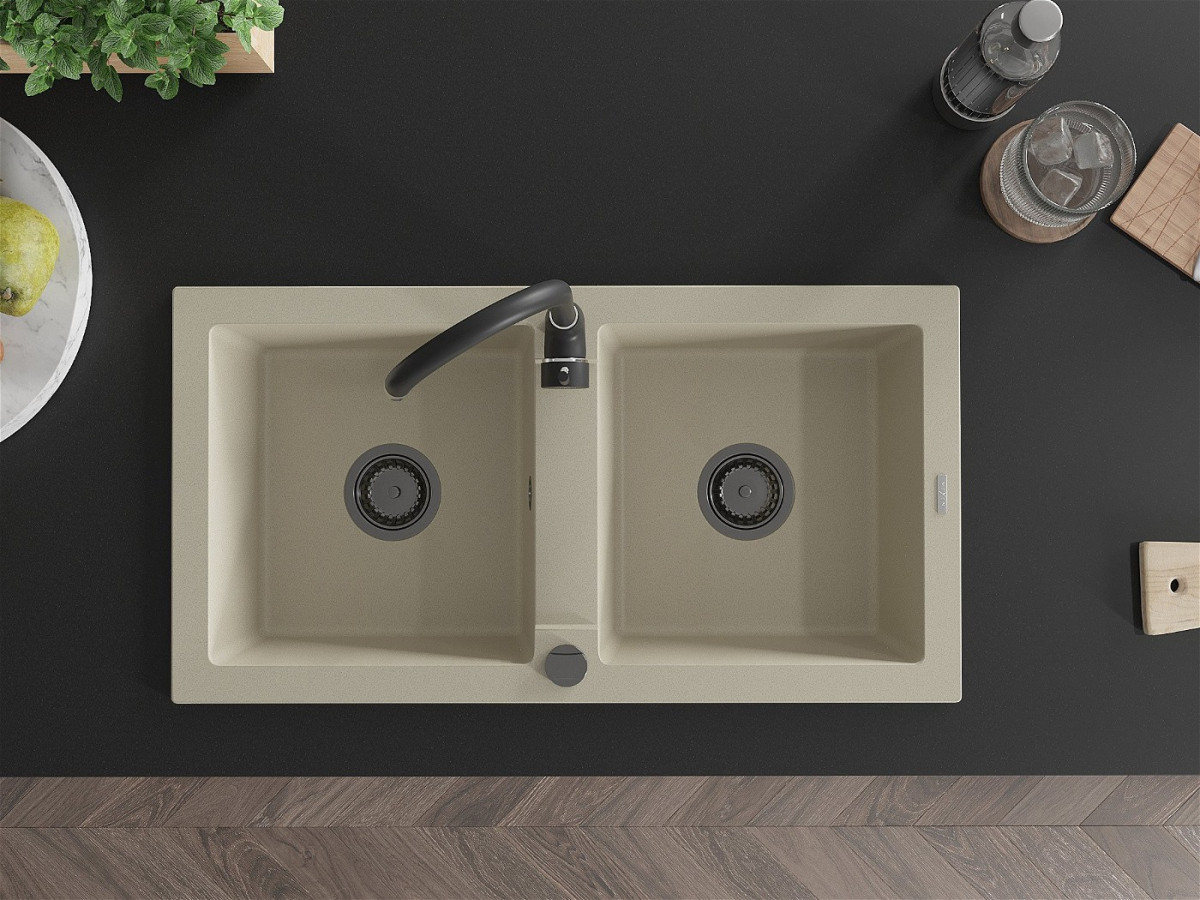 Mexen Mario Chiuveta bucatarie granit 2 cuva+ cadou pop up sifon 820 x 436 mm, beige, sifon negru - 6504822000-69-B Prezentarea