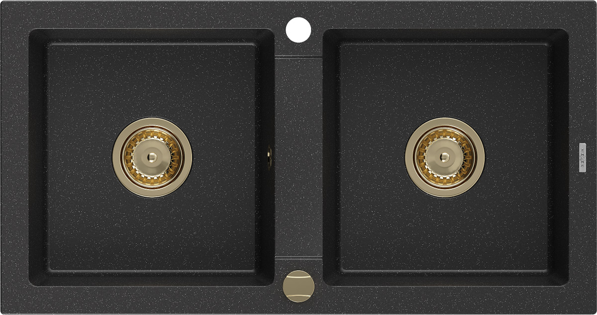Mexen Mario Chiuveta bucatarie granit 2 cuva+ cadou pop up sifon 820 x 436 mm, negru / chrom, sifon auriu - 6504822000-73-G Prezentarea
