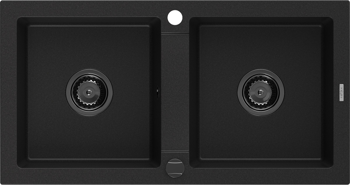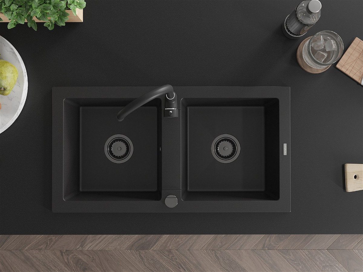 Mexen Mario Chiuveta bucatarie granit 2 cuva+ cadou pop up sifon 820 x 436 mm, negru , sifon negru - 6504822000-77-B Prezentarea