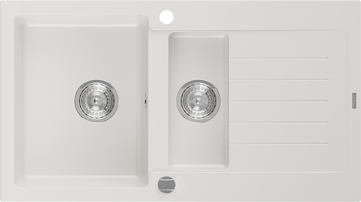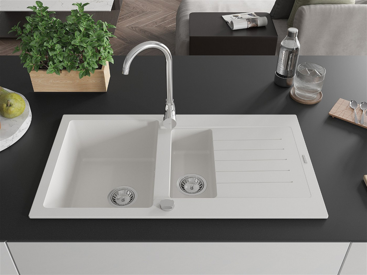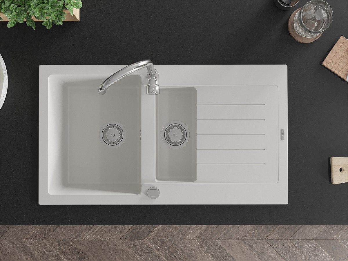 Mexen Matias Chiuveta bucatarie granit 1,5 cuva + picurator+ cadou pop up sifon 90 x 50,5 cm, alb - 6502901505-20 Prezentarea
