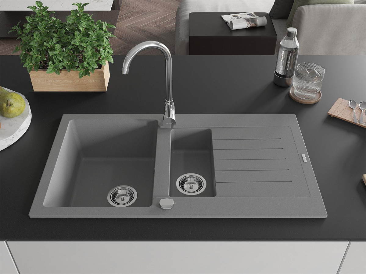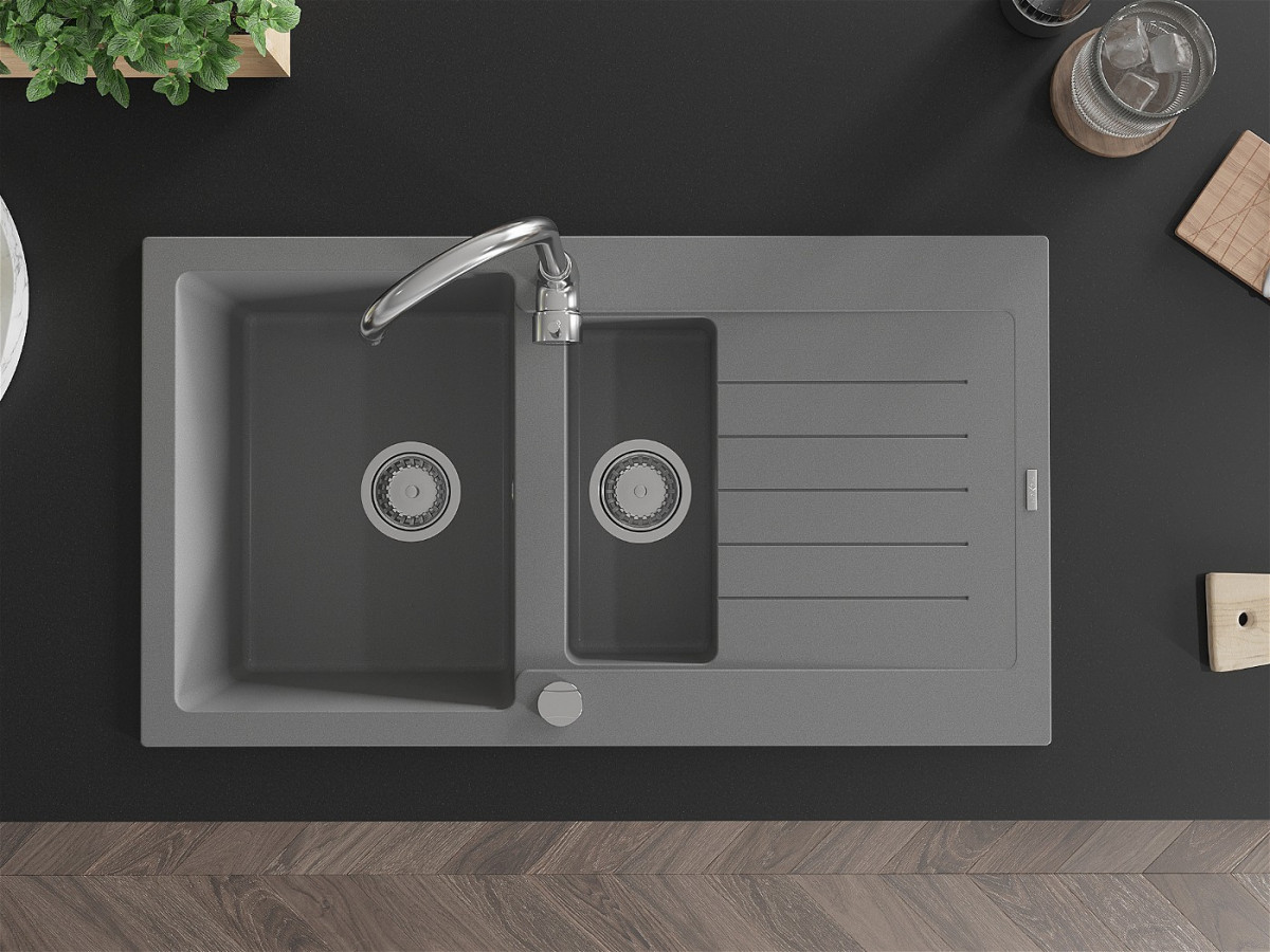 Mexen Matias Chiuveta bucatarie granit 1,5 cuva + picurator+ cadou pop up sifon 90 x 50,5 cm, gri - 6502901505-71 Prezentarea