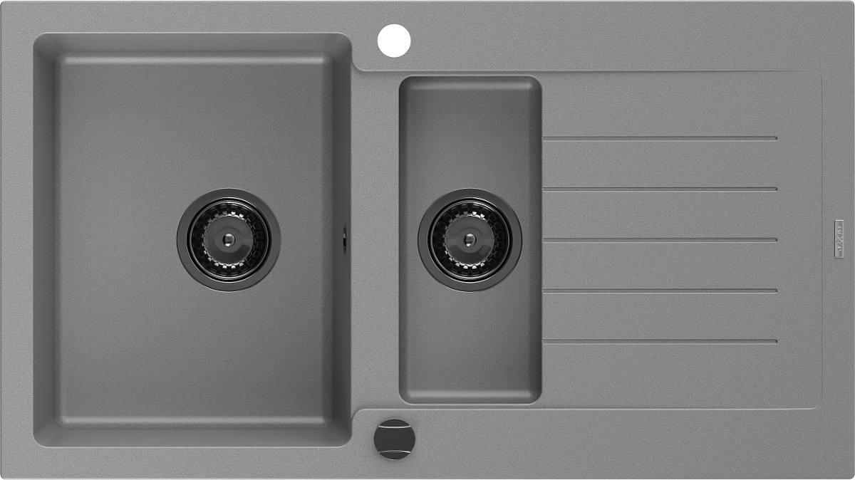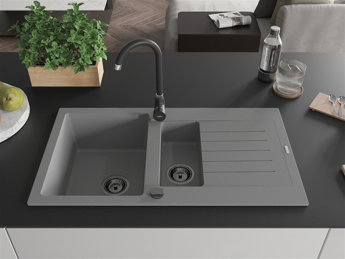 Mexen Matias Chiuveta bucatarie granit 1,5 cuva + picurator+ cadou pop up sifon 900 x 505 mm, gri , sifon negru - 6502901505-71-B Prezentarea