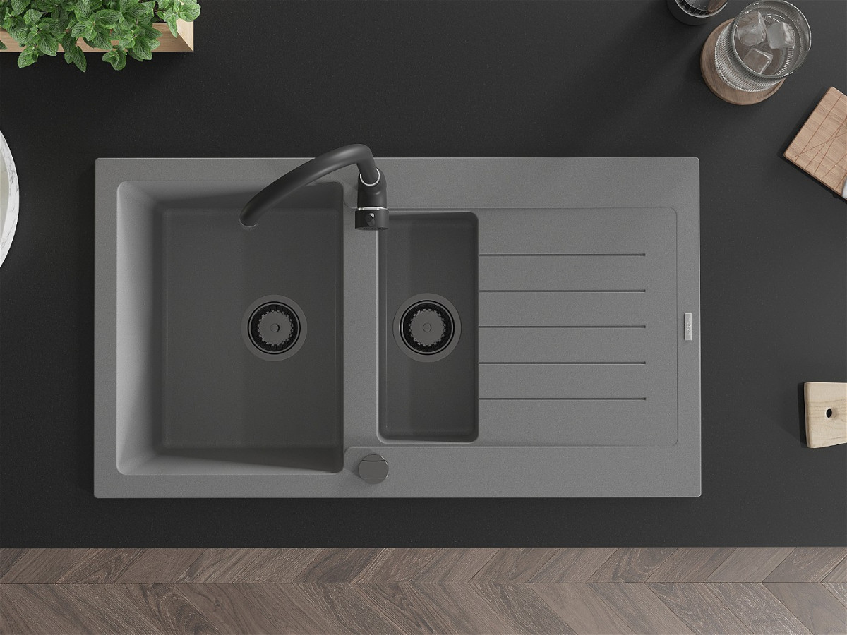 Mexen Matias Chiuveta bucatarie granit 1,5 cuva + picurator+ cadou pop up sifon 900 x 505 mm, gri , sifon negru - 6502901505-71-B