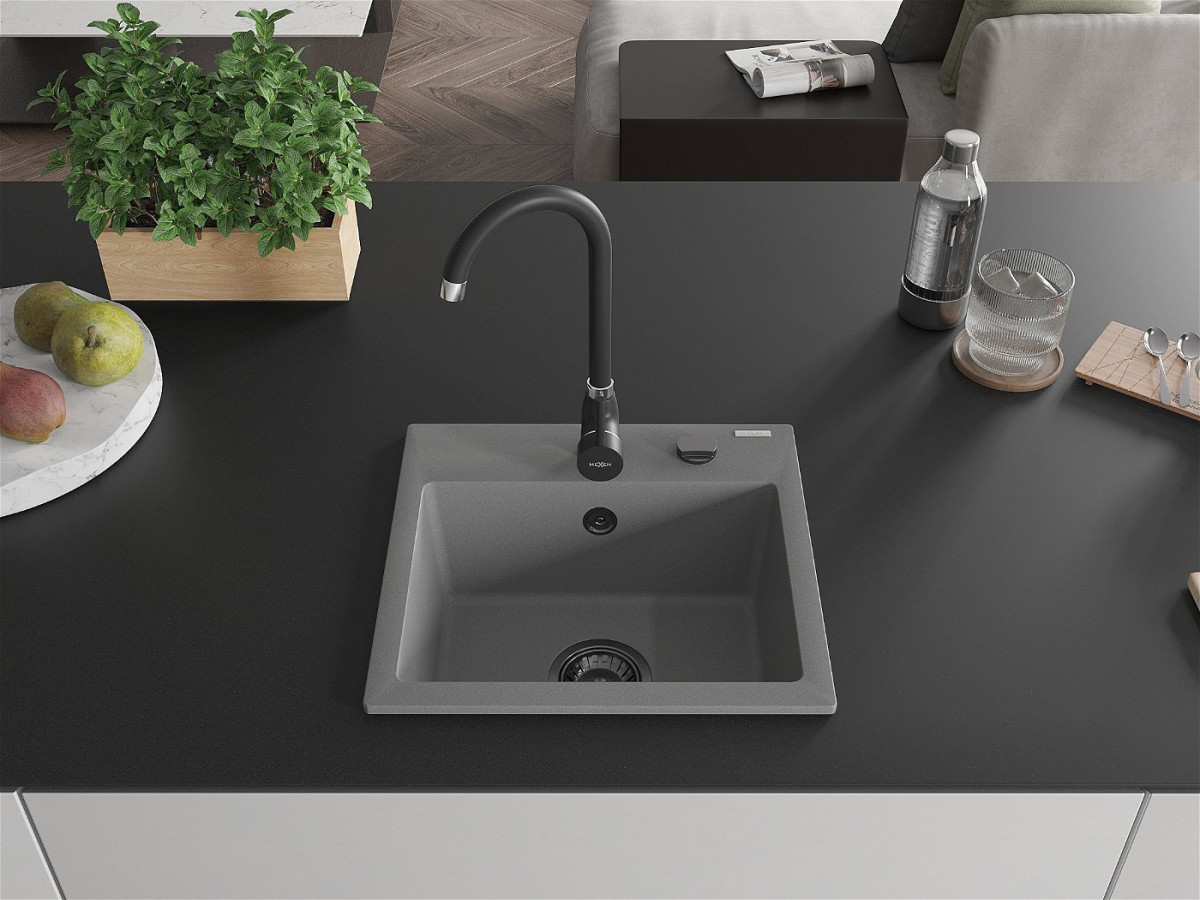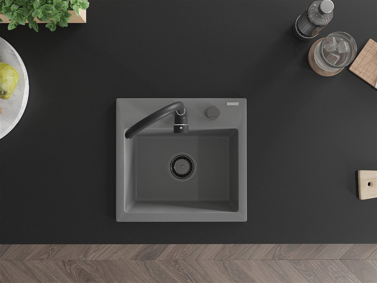 Mexen Milo Chiuveta bucatarie granit 1 cuva + cadou pop up sifon 435 x 410 mm, gri , sifon negru - 6505441000-71-B Prezentarea