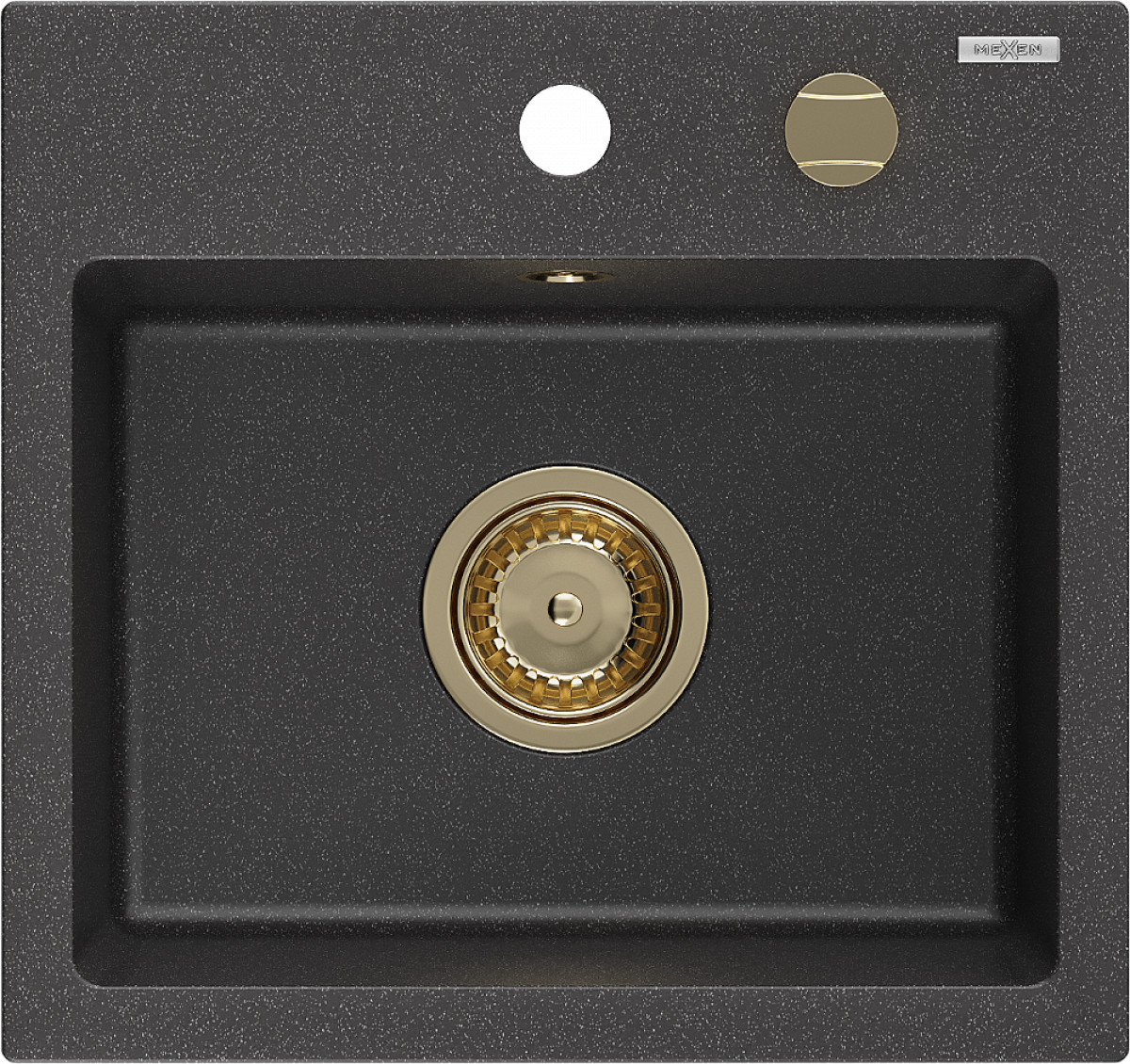 Mexen Milo Chiuveta bucatarie granit 1 cuva + cadou pop up sifon 435 x 410 mm, negru piatra, sifon auriu - 6505441000-76-G Prezentarea