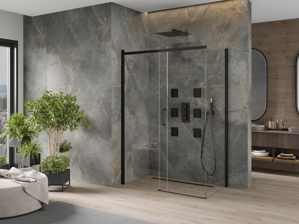 Mexen Omega Cabina de dus Usa culisanta 160 x 80 cm, transparent, negru - 825-160-080-70-00 Prezentarea