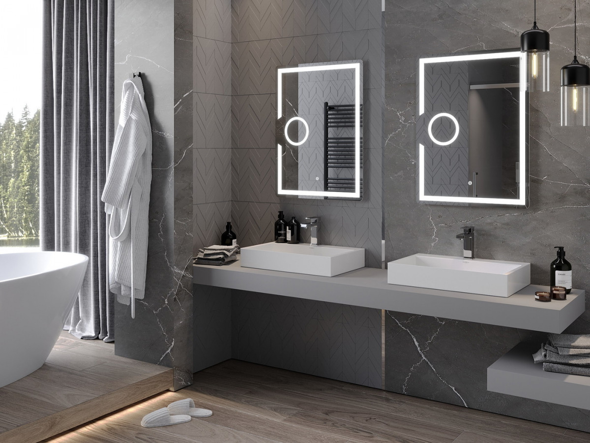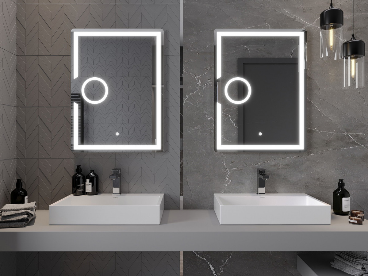 Oglinda cu LED de designer de lux, care transforma baia ta intr-un spatiu nou nu numai datorita frumusetii si caracterului practic, ci mai ales datorita accesoriului. Iluminare minunată cu funcție de dezaburire.