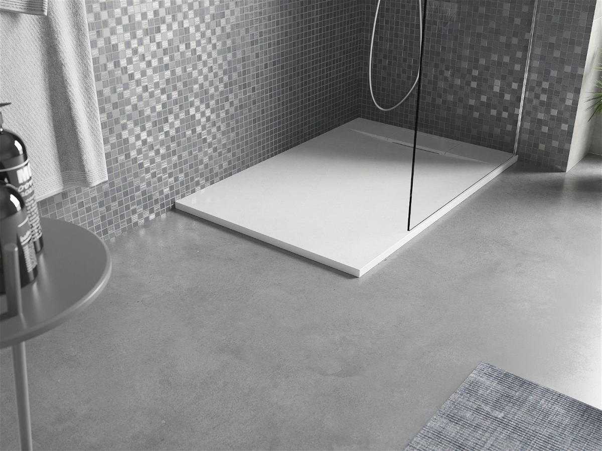 CadIă de duș subțiată cu efect de piatră Metxen, care combină cele mai recente tendințe în baie cu utilizarea practică. Poate fi instalat pe podea sau înfundat în podea, creând astfel o suprafață de duș plană cu pardoseala finală.