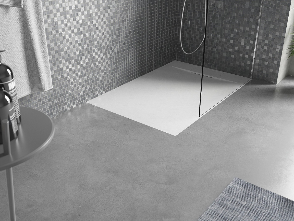 CadIă de duș subțiată cu efect de piatră Metxen, care combină cele mai recente tendințe în baie cu utilizarea practică. Poate fi instalat pe podea sau înfundat în podea, creând astfel o suprafață de duș plană cu pardoseala finală.