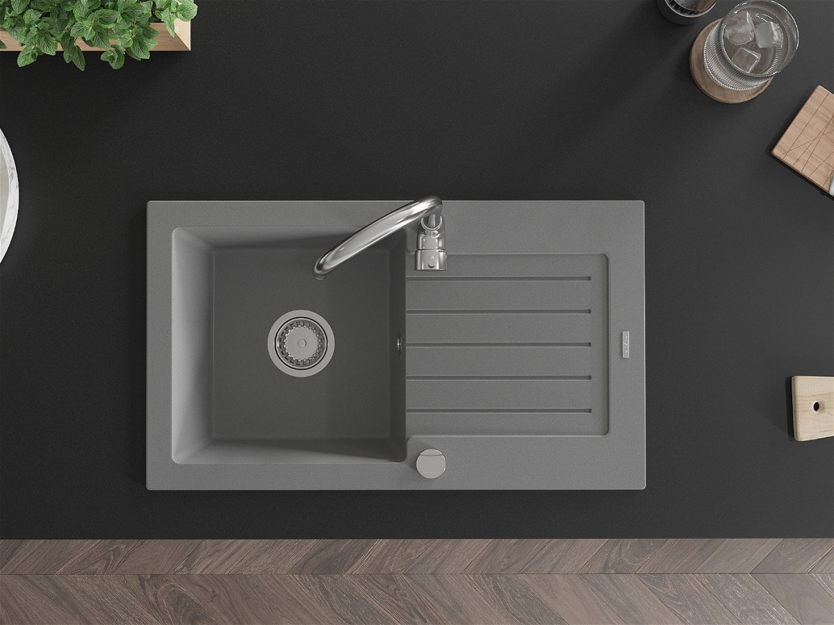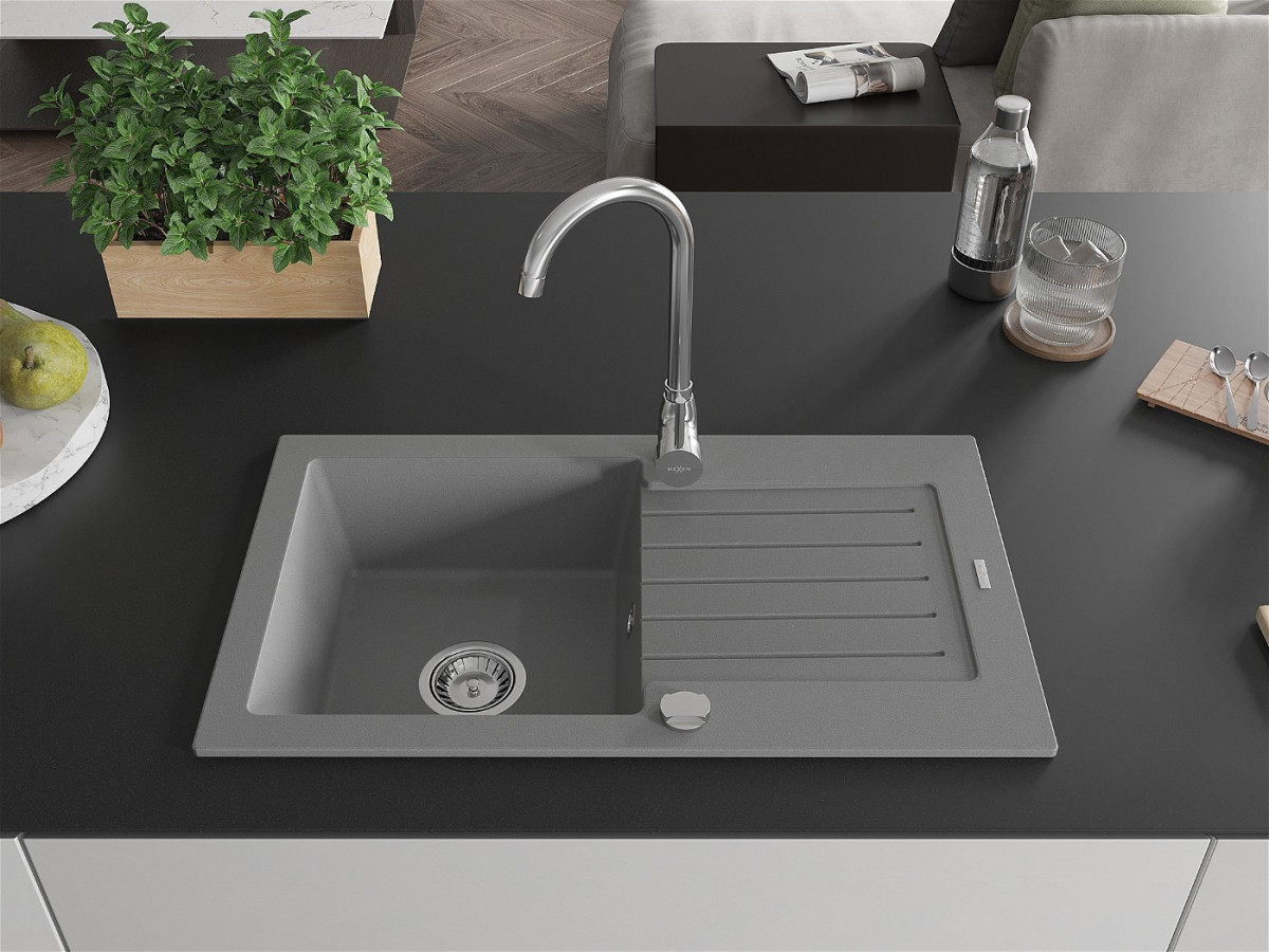 Mexen Pablo Chiuveta bucatarie granit 1 cuva + picurator+ cadou pop up sifon 75,2 x 43,6 cm, gri - 6510751010-71 Prezentarea