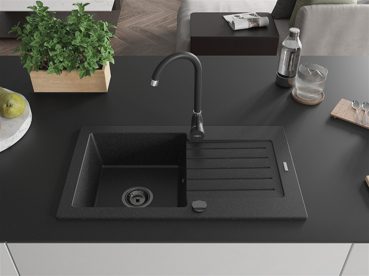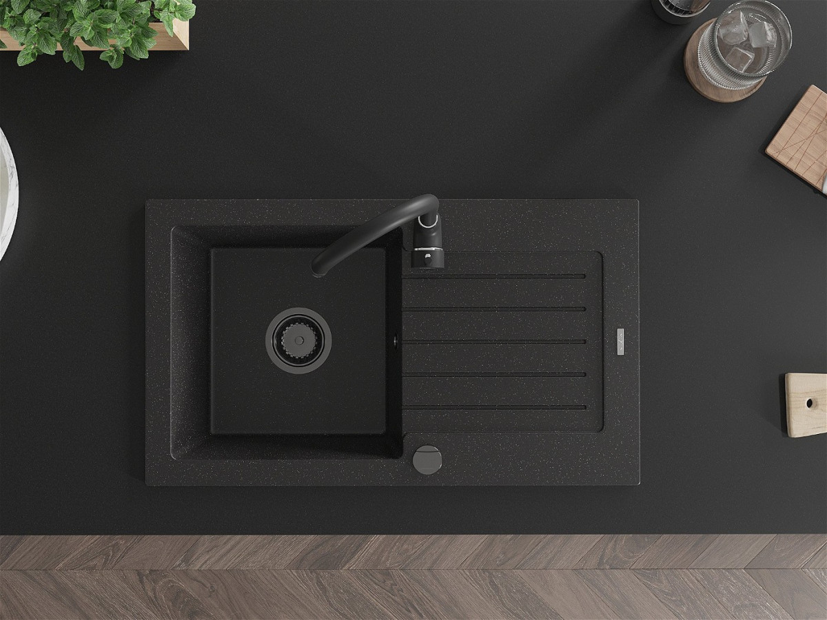 Mexen Pablo Chiuveta bucatarie granit 1 cuva + picurator+ cadou pop up sifon 752 x 436 mm, negru / chrom, sifon negru - 6510751010-73-B Prezentarea