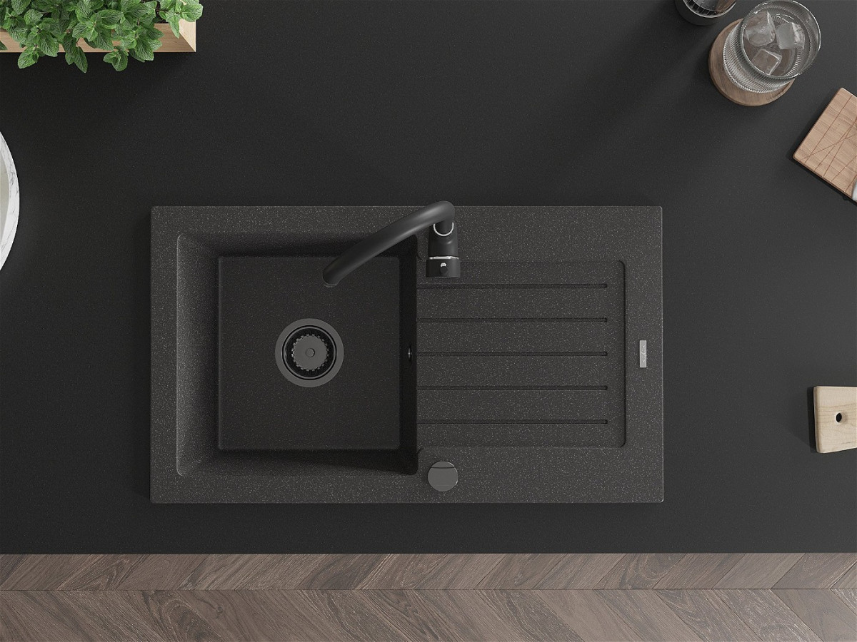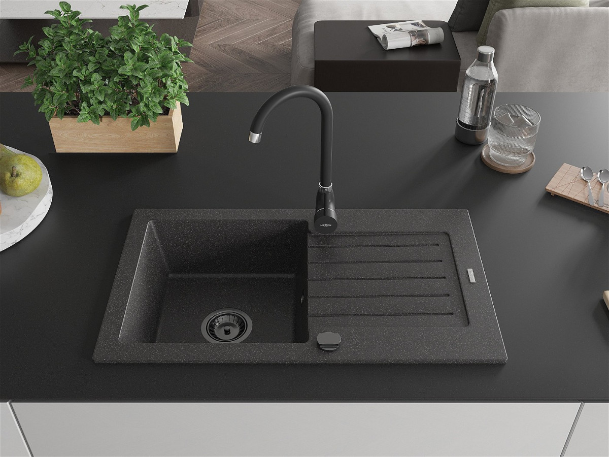 Mexen Pablo Chiuveta bucatarie granit 1 cuva + picurator+ cadou pop up sifon 752 x 436 mm, negru piatra, sifon negru - 6510751010-76-B Prezentarea