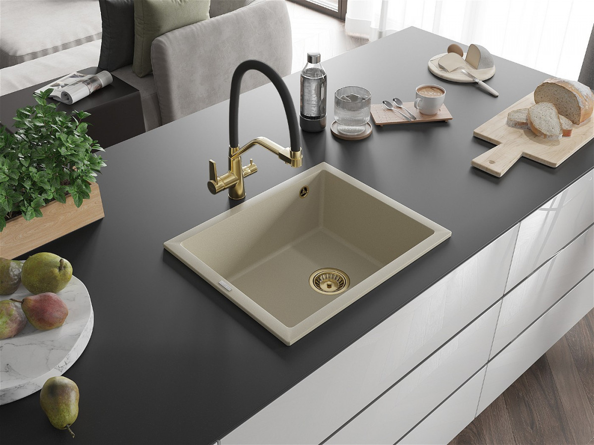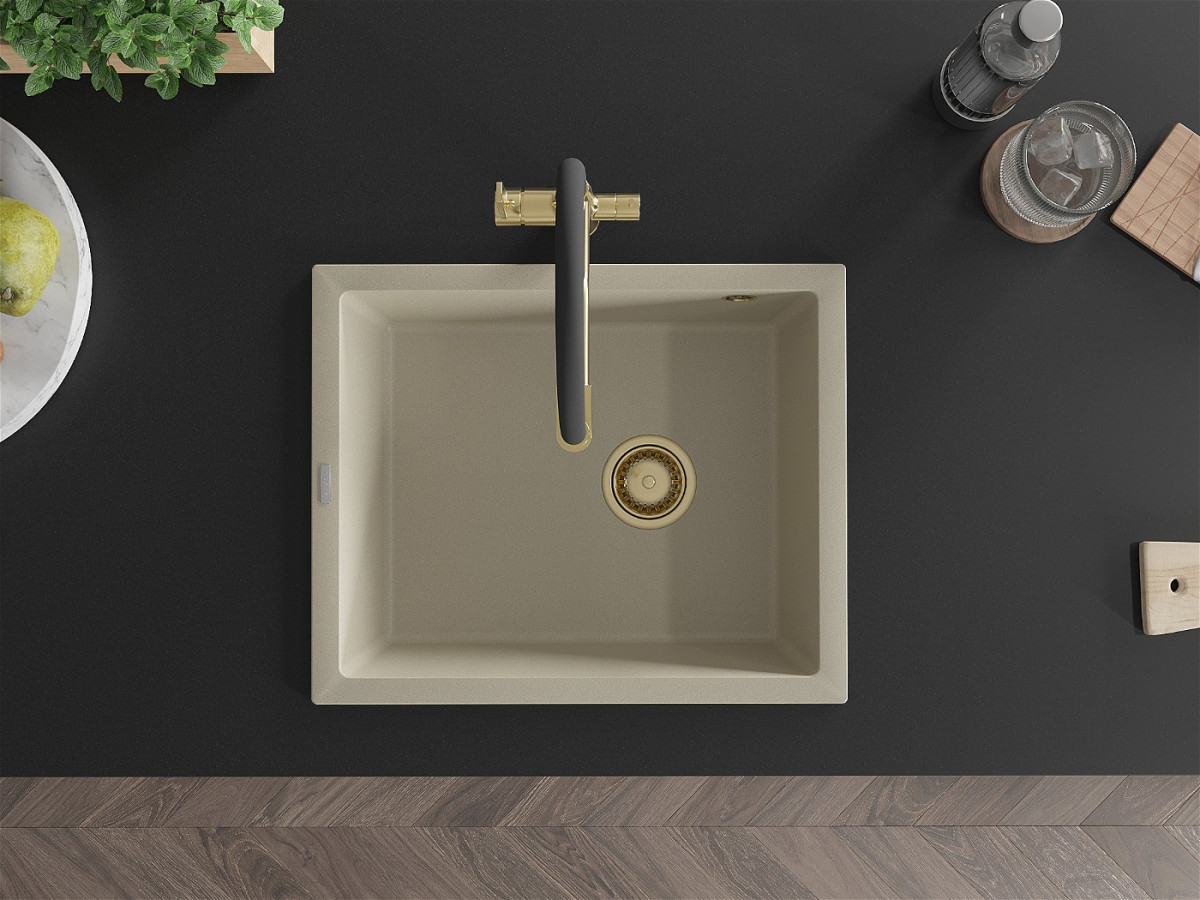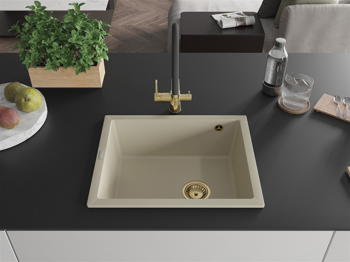 Mexen Pedro Chiuveta bucatarie granit 1 cuva + cadou pop up sifon 560 x 460 mm, beige, sifon auriu - 6508561000-69-G Prezentarea