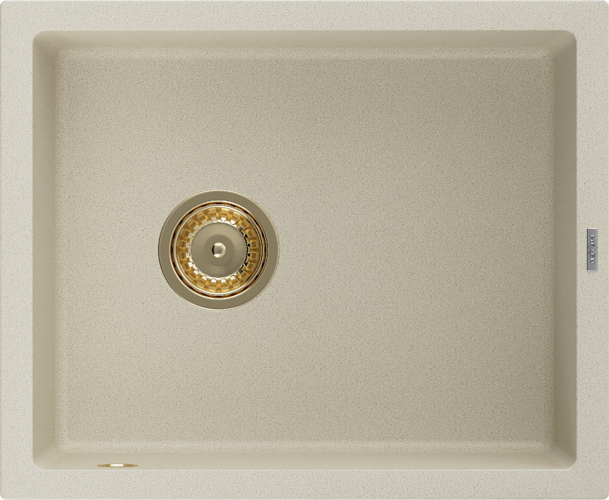 Mexen Pedro   Chiuveta bucatarie granit 1 cuva + cadou pop up sifon  560 x 460 mm, beige, sifon  auriu  - 6508561000-69-G
