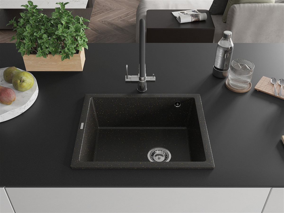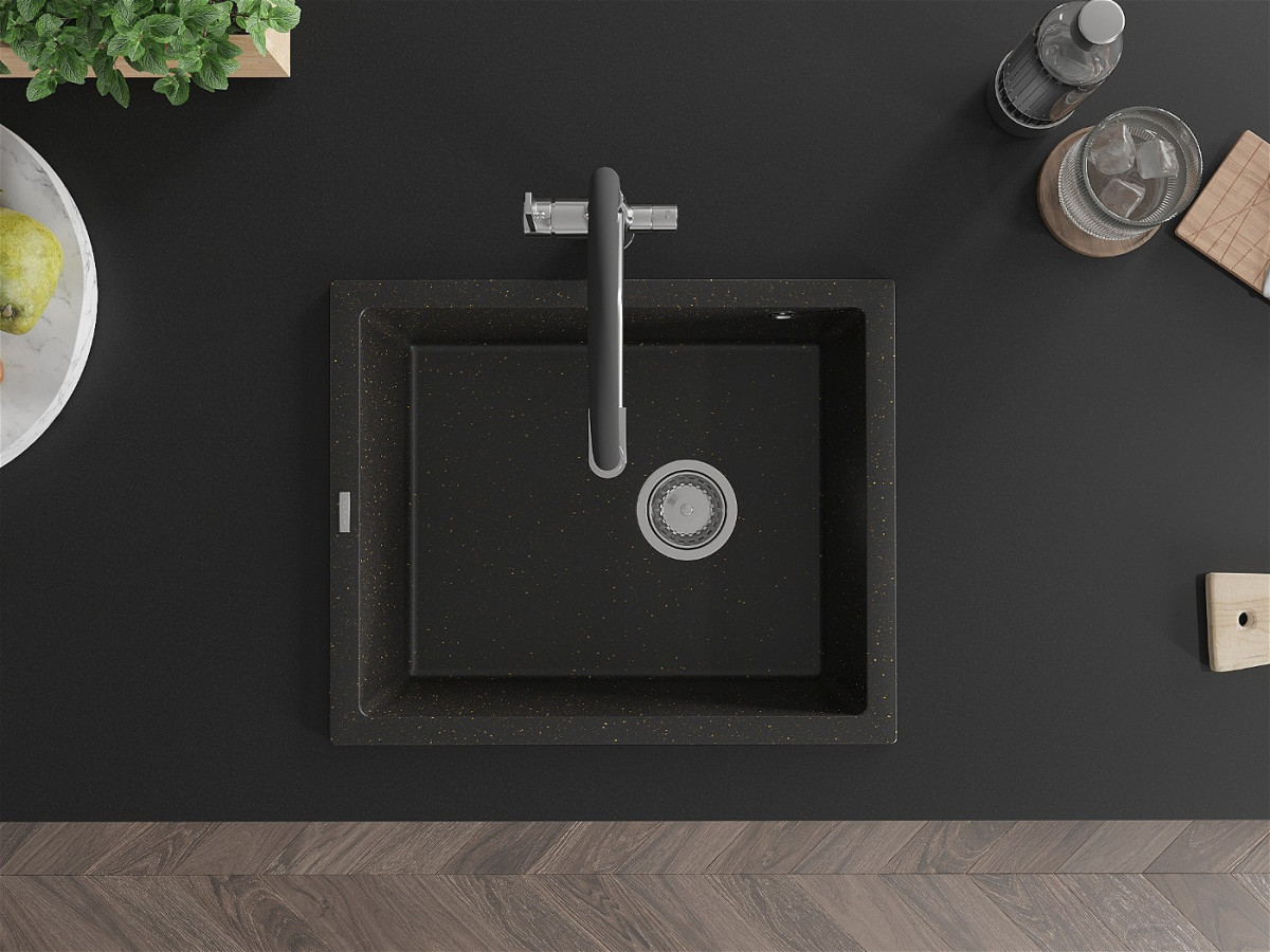 Mexen Pedro Chiuveta bucatarie granit 1 cuva + cadou pop up sifon 560 x 460 mm, negru / auriu - 6508561000-75 Prezentarea
