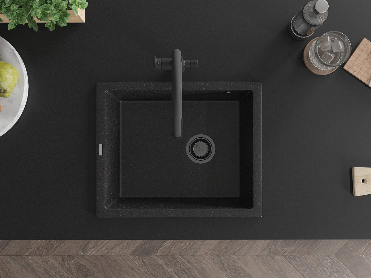 Mexen Pedro Chiuveta bucatarie granit 1 cuva + cadou pop up sifon 560 x 460 mm, negru / chrom, sifon negru - 6508561000-73-B Prezentarea