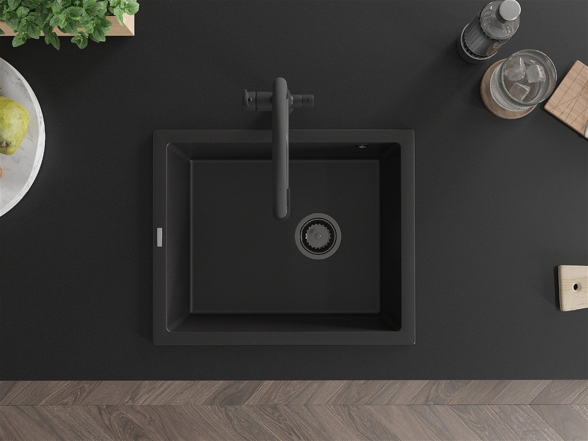 Mexen Pedro Chiuveta bucatarie granit 1 cuva + cadou pop up sifon 560 x 460 mm, negru , sifon negru - 6508561000-77-B Prezentarea