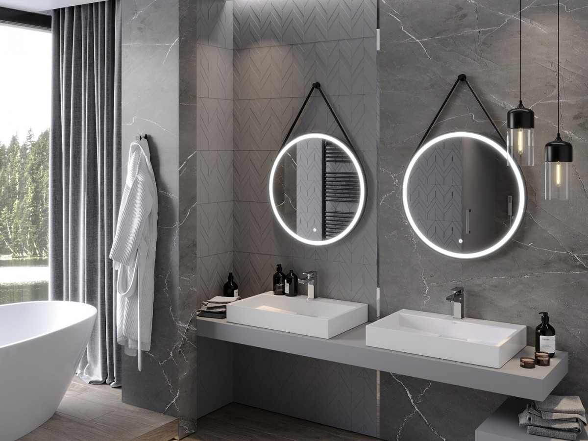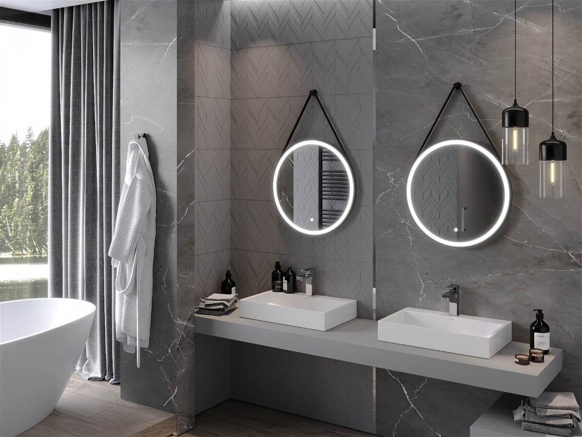 Oglinda cu LED de designer de lux, care transforma baia ta intr-un spatiu nou nu numai datorita frumusetii si caracterului practic, ci mai ales datorita accesoriului. Iluminare minunată cu funcție de dezaburire.