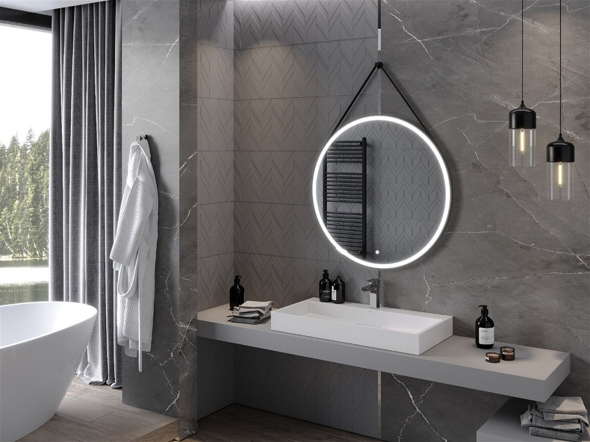 Mexen Reni Oglinda de baie iluminata, rotunda 90 cm, LED 6000K, antypara, negru cadru - 9812-090-090-611-70 Prezentarea