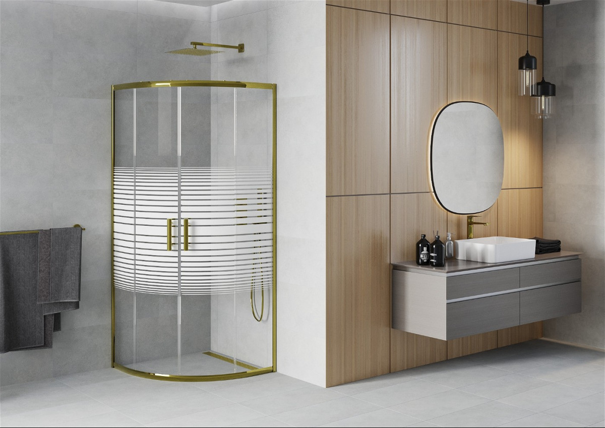 Mexen Rio Cabina de dus semirotunda 70 x 70 cm, intimato , auriu - 863-070-070-50-20 Prezentarea