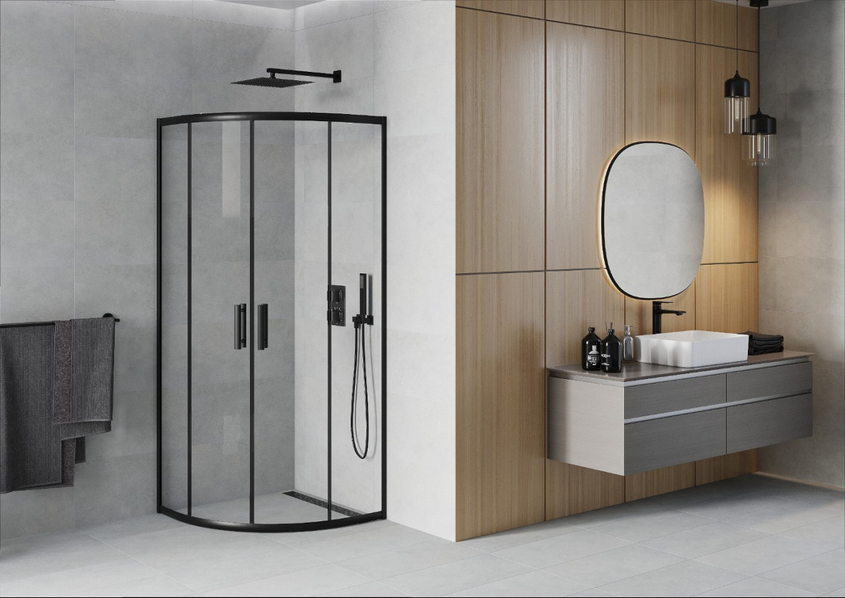 Mexen Rio Cabina de dus semirotunda 80 x 80 cm, transparent, negru - 863-080-080-70-00 Prezentarea