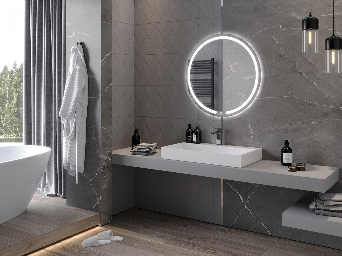 Oglinda cu LED de designer de lux, care transforma baia ta intr-un spatiu nou nu numai datorita frumusetii si caracterului practic, ci mai ales datorita accesoriului. Iluminare minunată cu funcție de dezaburire.