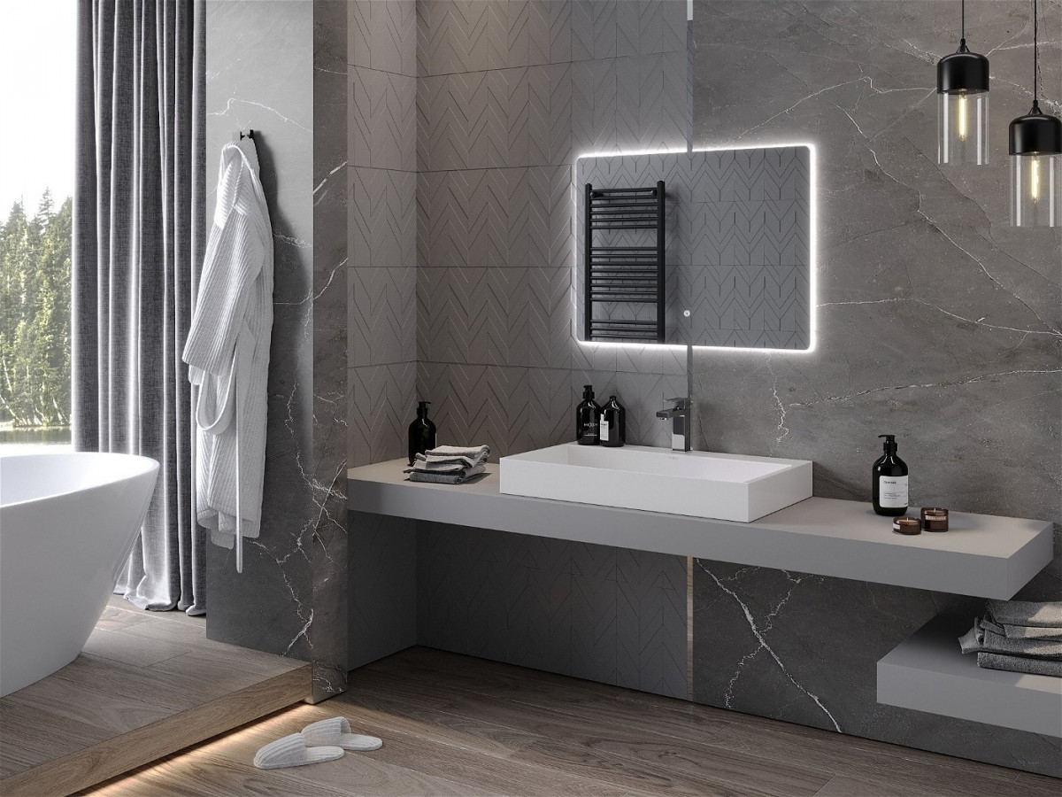 Oglinda cu LED de designer de lux, care transforma baia ta intr-un spatiu nou nu numai datorita frumusetii si caracterului practic, ci mai ales datorita accesoriului. Iluminare minunată cu funcție de dezaburire.
