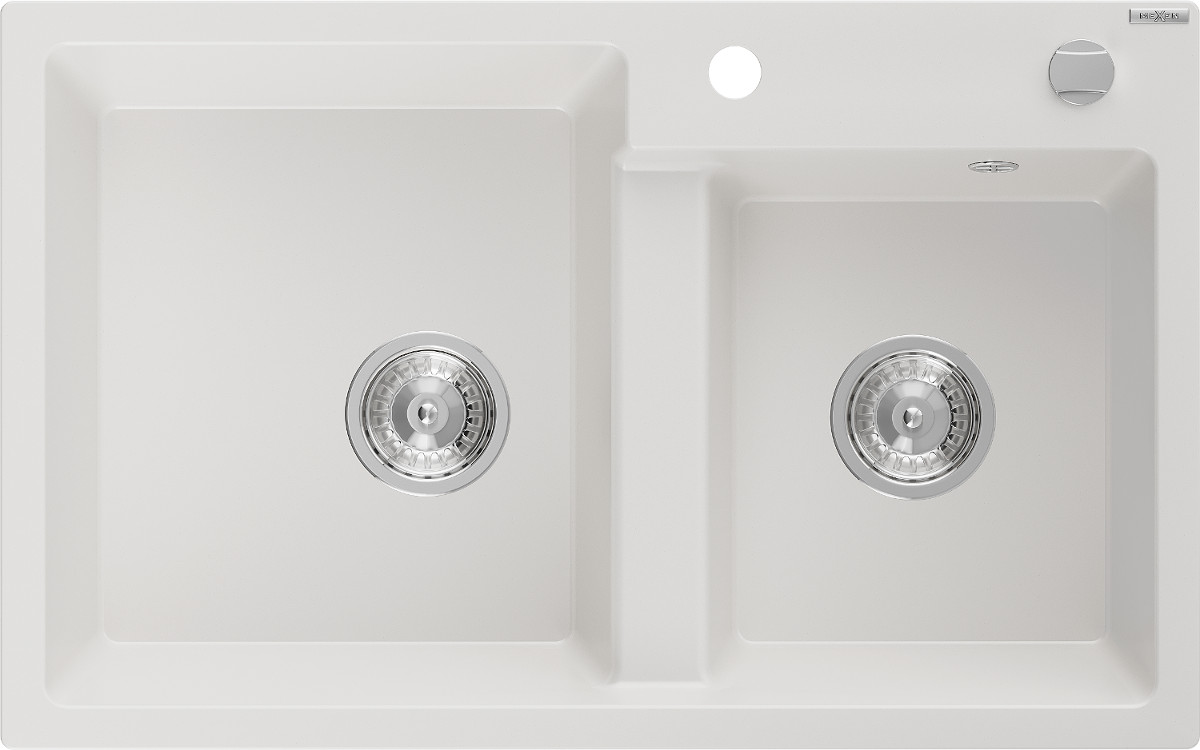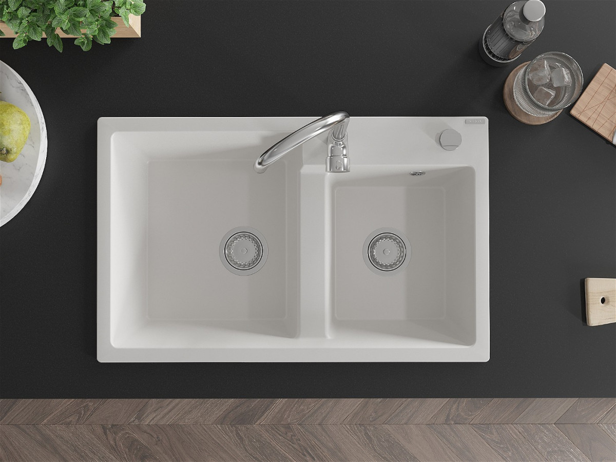 Mexen Tomas Chiuveta bucatarie granit 2 cuva+ cadou pop up sifon 800 x 500 mm, alb , sifon chrom - 6516802000-20 Prezentarea