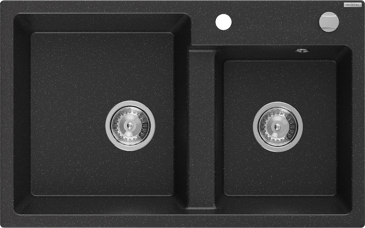 Mexen Tomas Chiuveta bucatarie granit 2 cuva+ cadou pop up sifon 800 x 500 mm, negru / chrom, sifon chrom - 6516802000-73 Prezentarea
