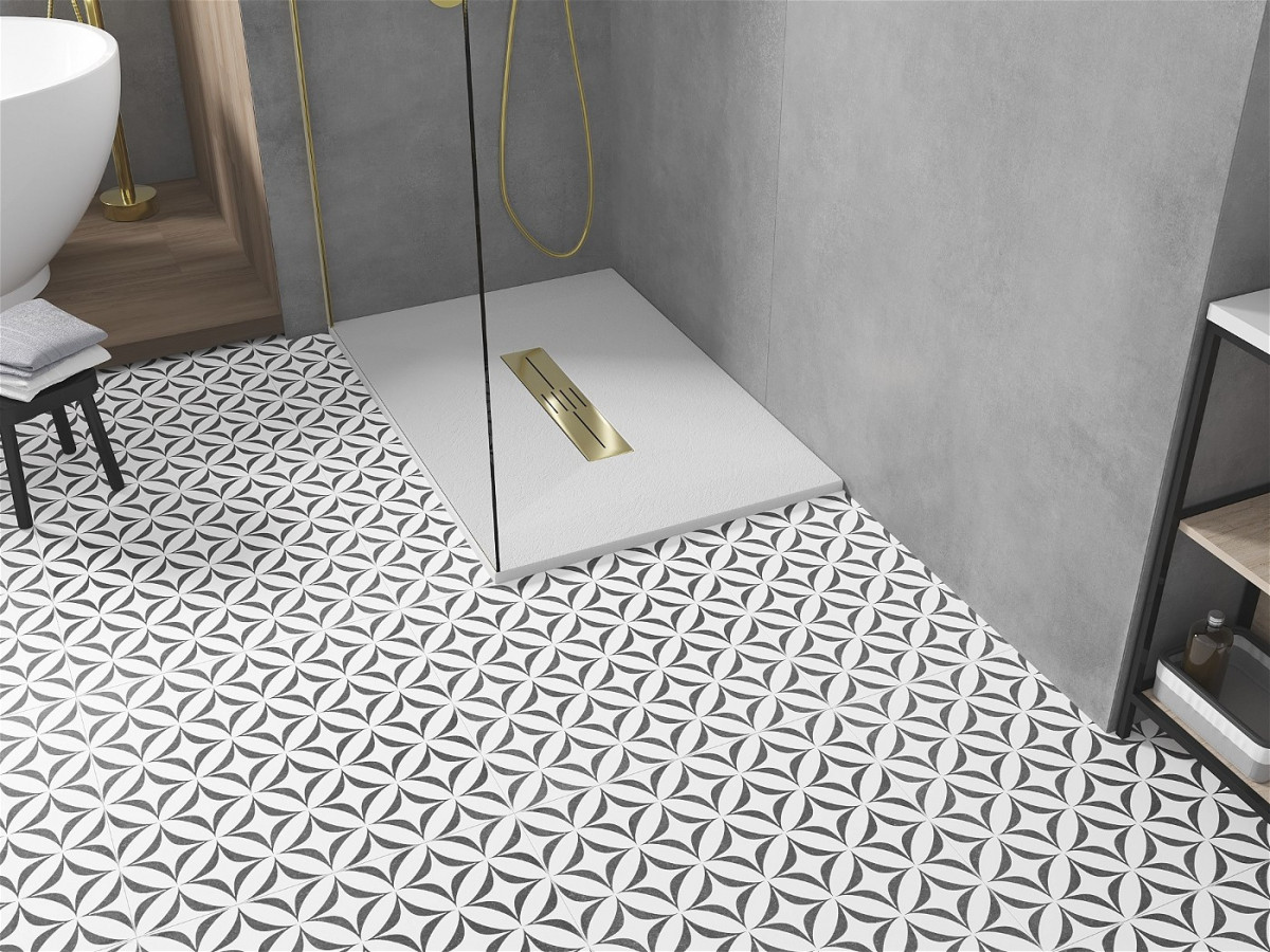 CadIă de duș subțiată cu efect de piatră Metxen, care combină cele mai recente tendințe în baie cu utilizarea practică. Poate fi instalat pe podea sau înfundat în podea, creând astfel o suprafață de duș plană cu pardoseala finală.