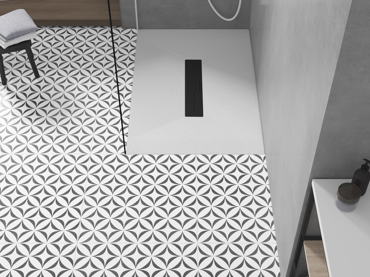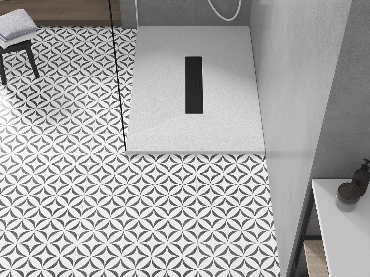 CadIă de duș subțiată cu efect de piatră Metxen, care combină cele mai recente tendințe în baie cu utilizarea practică. Poate fi instalat pe podea sau înfundat în podea, creând astfel o suprafață de duș plană cu pardoseala finală.