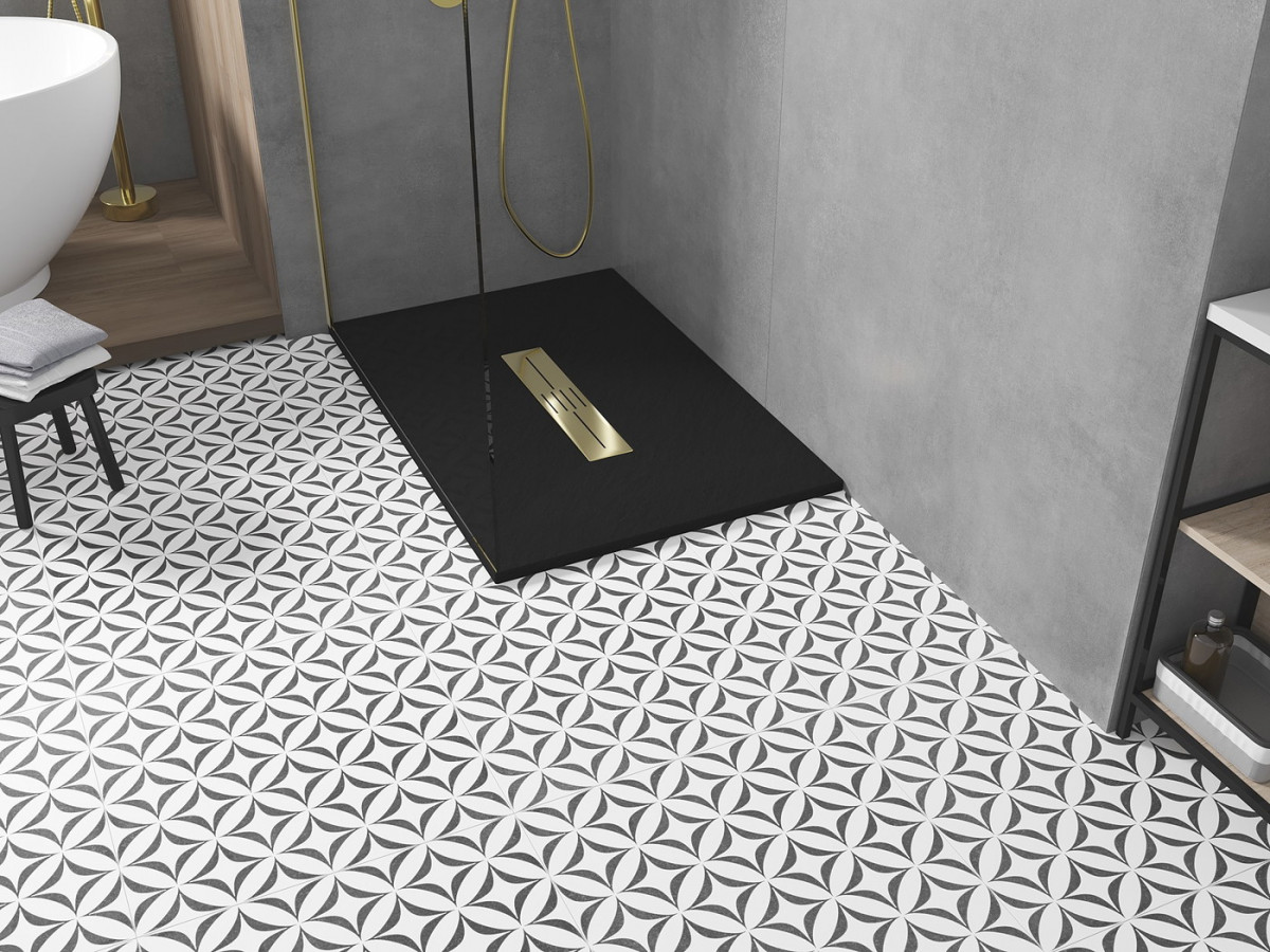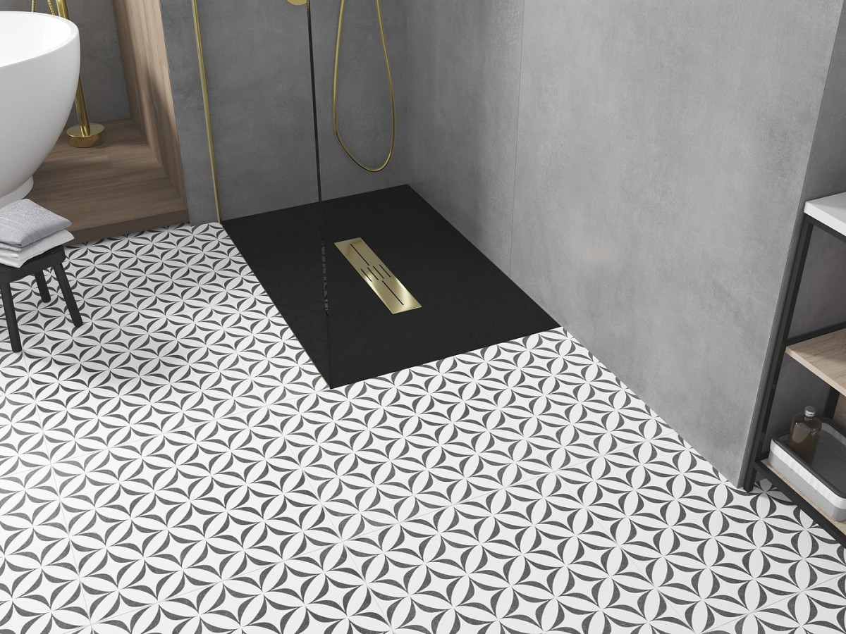 CadIă de duș subțiată cu efect de piatră Metxen, care combină cele mai recente tendințe în baie cu utilizarea practică. Poate fi instalat pe podea sau înfundat în podea, creând astfel o suprafață de duș plană cu pardoseala finală.