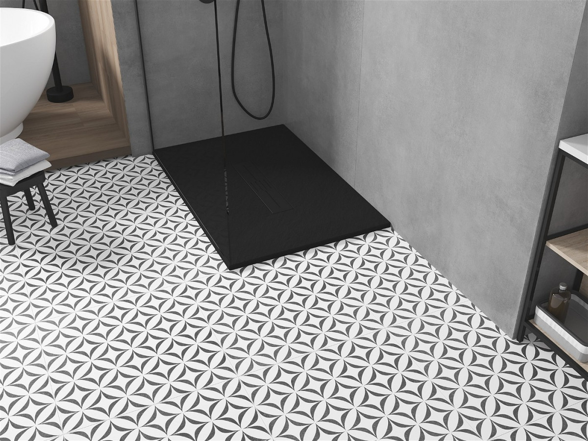CadIă de duș subțiată cu efect de piatră Metxen, care combină cele mai recente tendințe în baie cu utilizarea practică. Poate fi instalat pe podea sau înfundat în podea, creând astfel o suprafață de duș plană cu pardoseala finală.