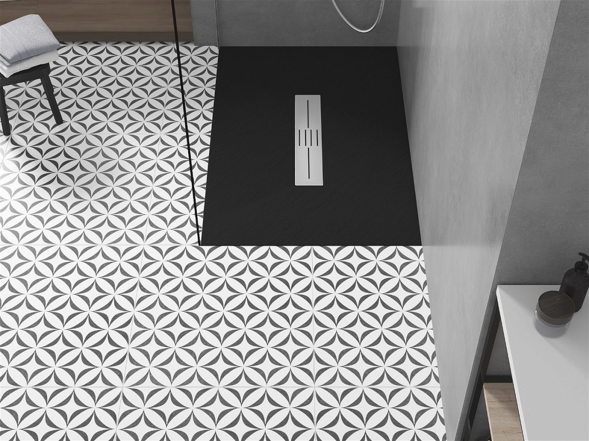 CadIă de duș subțiată cu efect de piatră Metxen, care combină cele mai recente tendințe în baie cu utilizarea practică. Poate fi instalat pe podea sau înfundat în podea, creând astfel o suprafață de duș plană cu pardoseala finală.