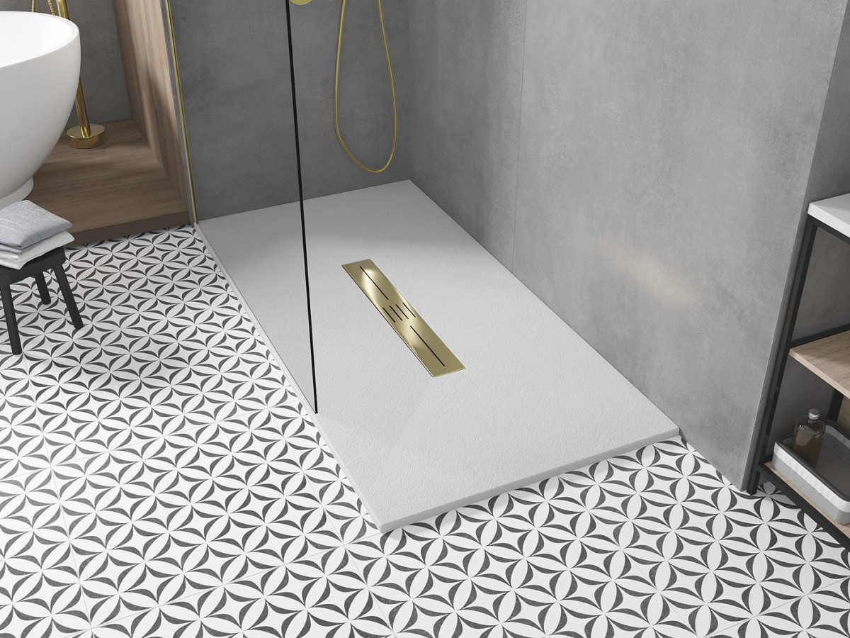 CadIă de duș subțiată cu efect de piatră Metxen, care combină cele mai recente tendințe în baie cu utilizarea practică. Poate fi instalat pe podea sau înfundat în podea, creând astfel o suprafață de duș plană cu pardoseala finală.