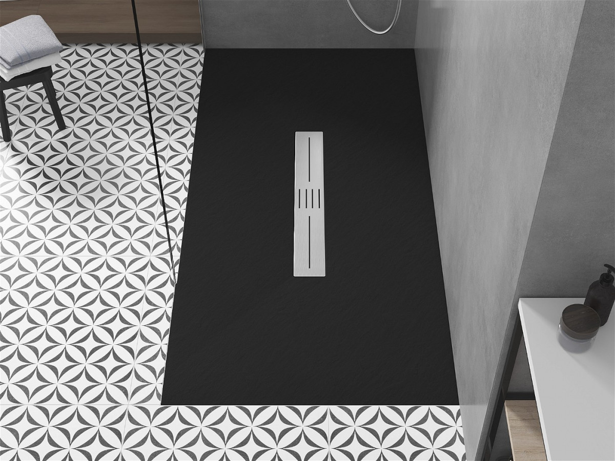 CadIă de duș subțiată cu efect de piatră Metxen, care combină cele mai recente tendințe în baie cu utilizarea practică. Poate fi instalat pe podea sau înfundat în podea, creând astfel o suprafață de duș plană cu pardoseala finală.