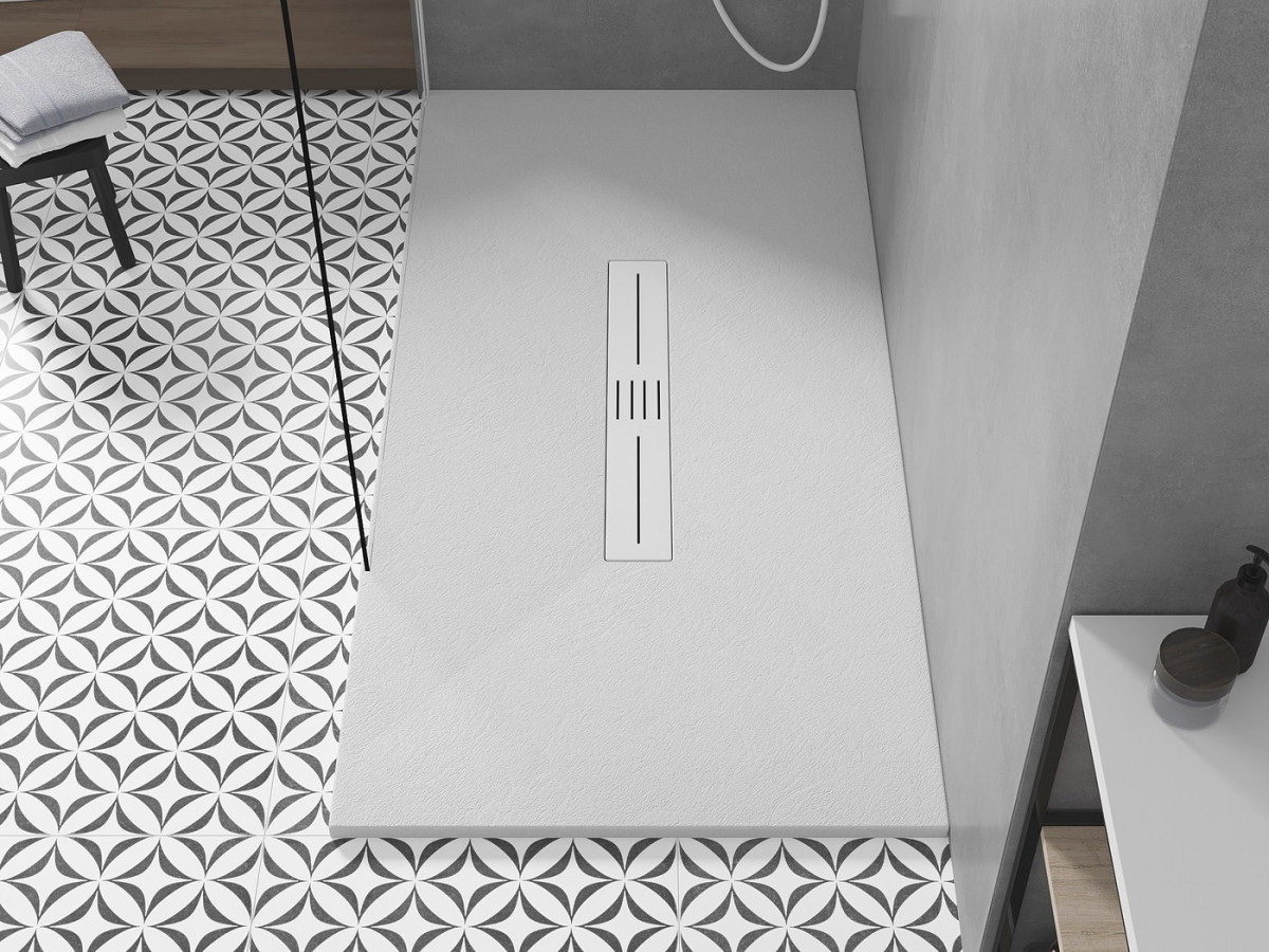 CadIă de duș subțiată cu efect de piatră Metxen, care combină cele mai recente tendințe în baie cu utilizarea practică. Poate fi instalat pe podea sau înfundat în podea, creând astfel o suprafață de duș plană cu pardoseala finală.