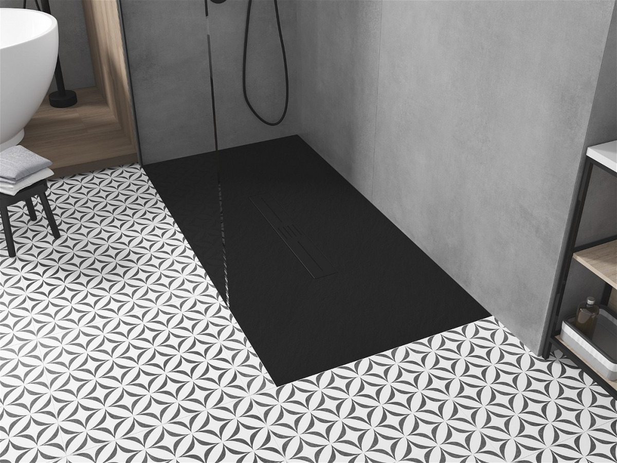 CadIă de duș subțiată cu efect de piatră Metxen, care combină cele mai recente tendințe în baie cu utilizarea practică. Poate fi instalat pe podea sau înfundat în podea, creând astfel o suprafață de duș plană cu pardoseala finală.