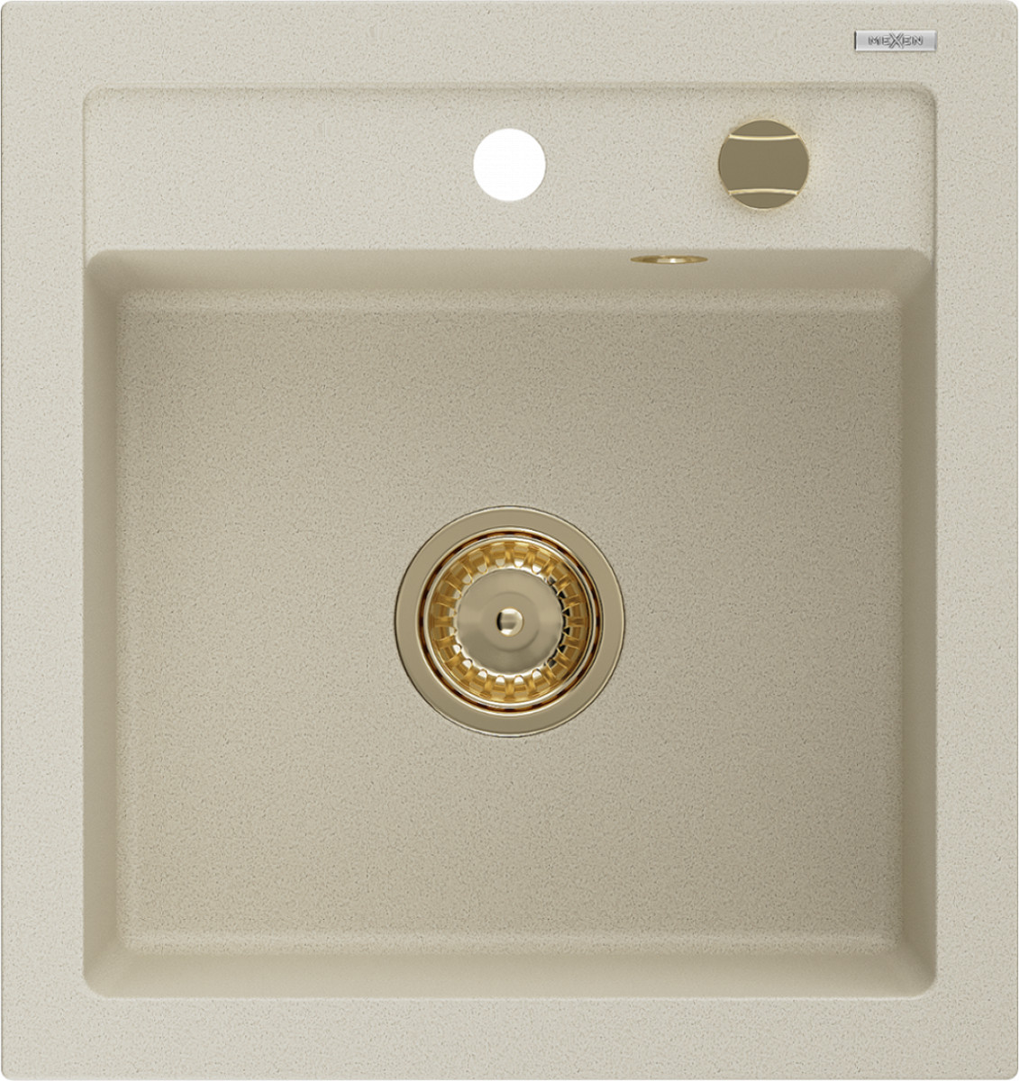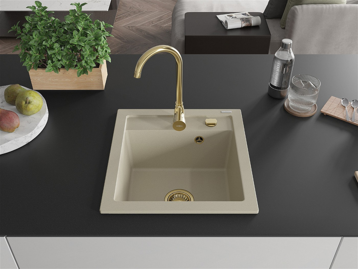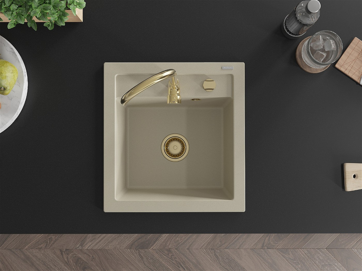 Mexen Vito Chiuveta bucatarie granit 1 cuva + cadou pop up sifon 520 x 490 mm, beige, sifon auriu - 6503521000-69-G Prezentarea