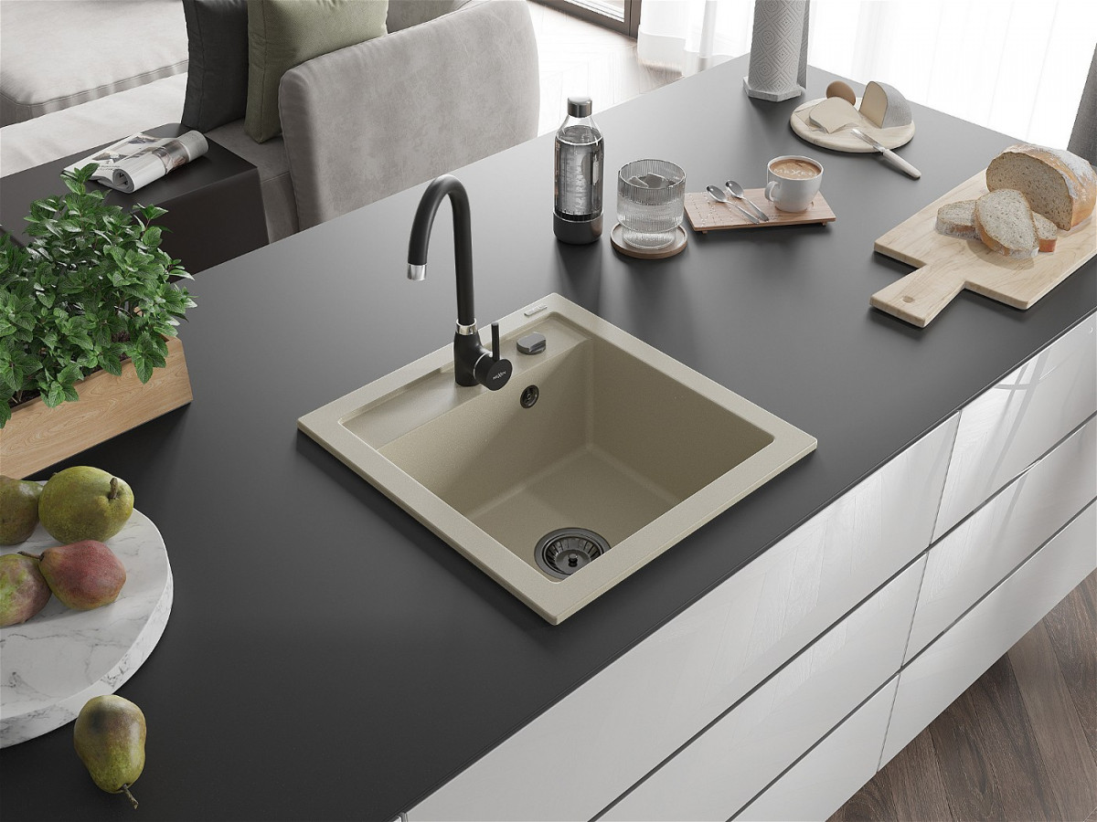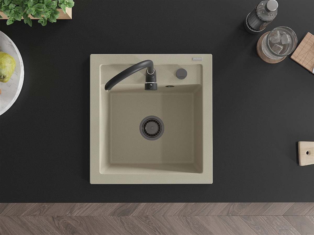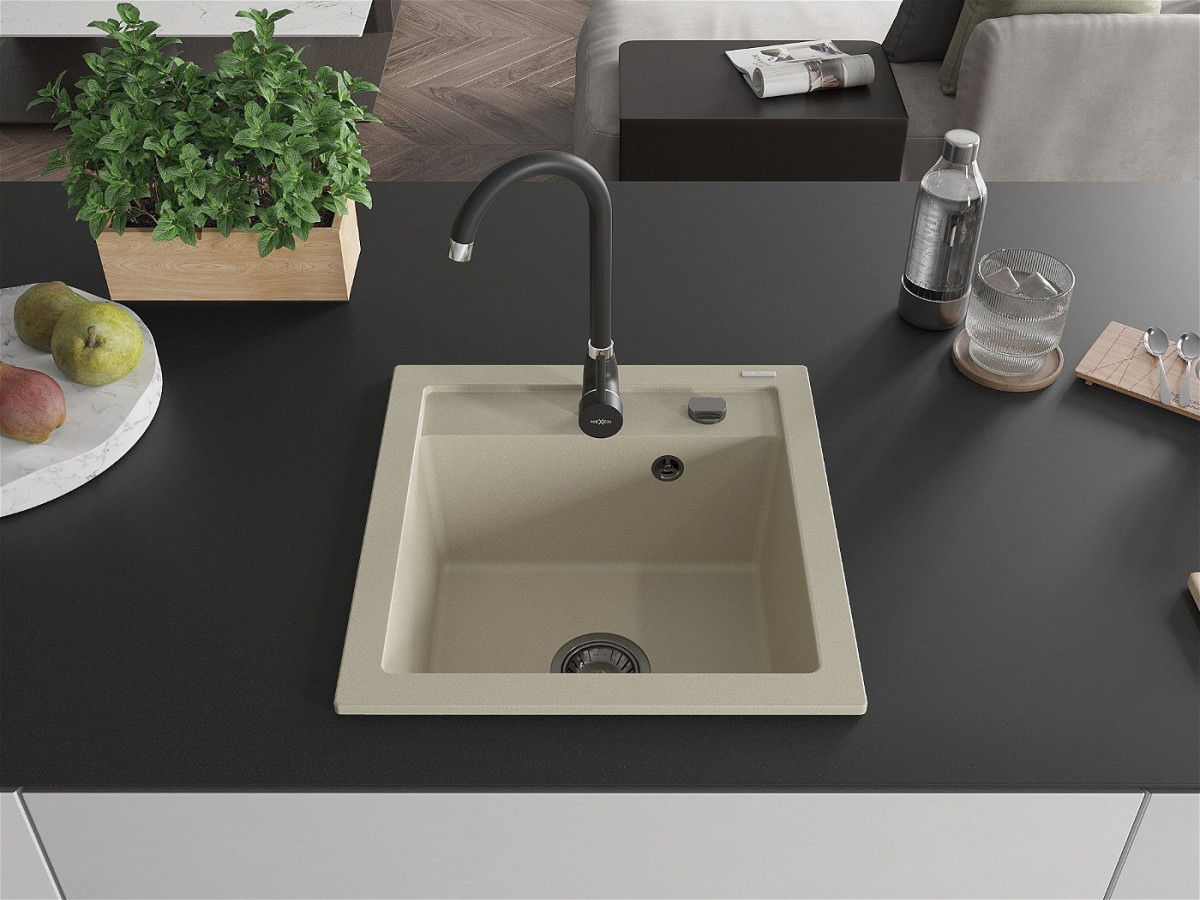 Mexen Vito Chiuveta bucatarie granit 1 cuva + cadou pop up sifon 520 x 490 mm, beige, sifon negru - 6503521000-69-B Prezentarea