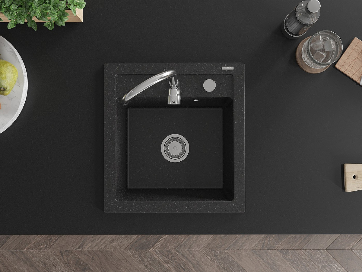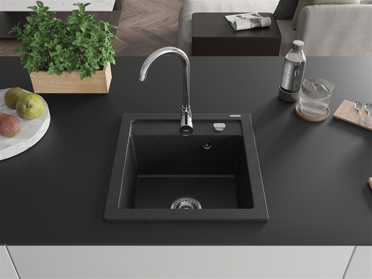 Mexen Vito Chiuveta bucatarie granit 1 cuva + cadou pop up sifon 520 x 490 mm, negru / chrom - 6503521000-73 Prezentarea