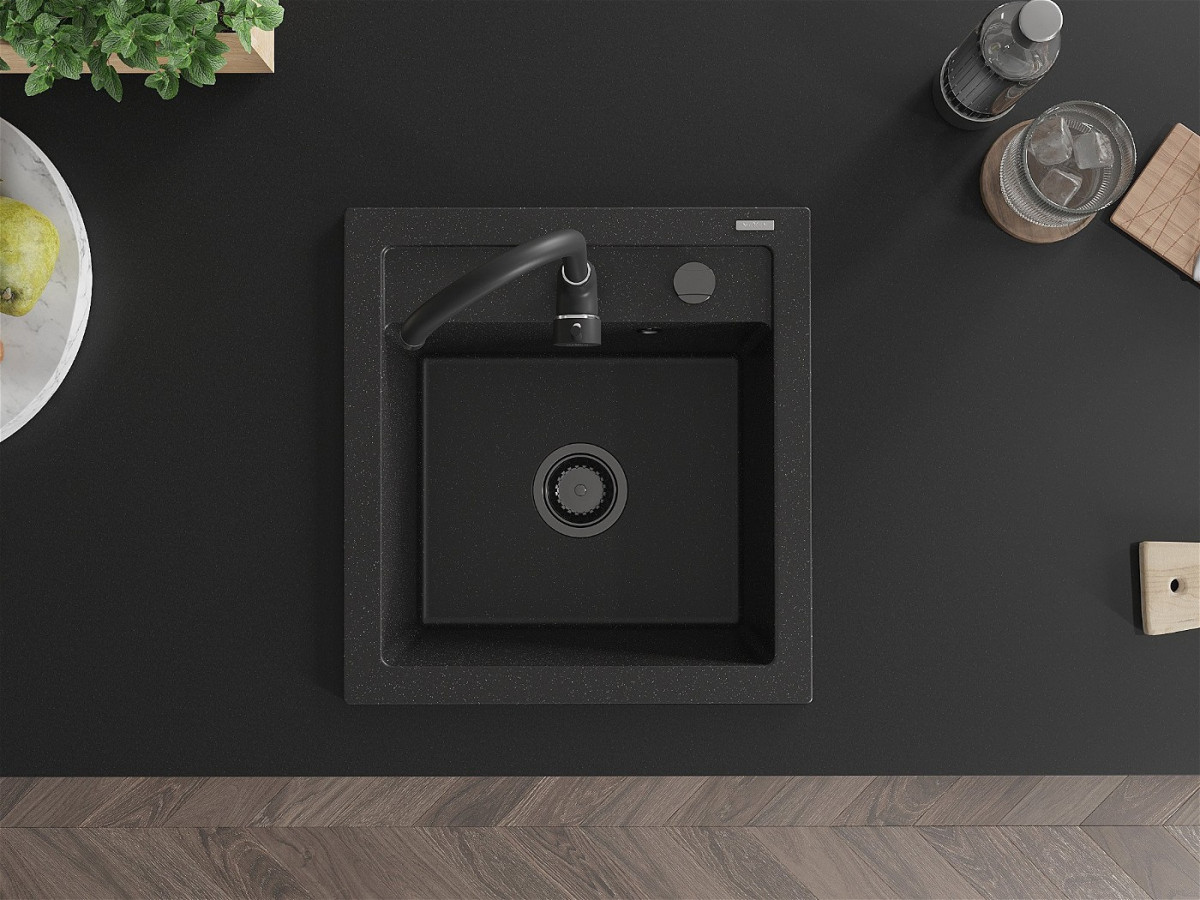 Mexen Vito Chiuveta bucatarie granit 1 cuva + cadou pop up sifon 520 x 490 mm, negru / chrom, sifon negru - 6503521000-73-B Prezentarea