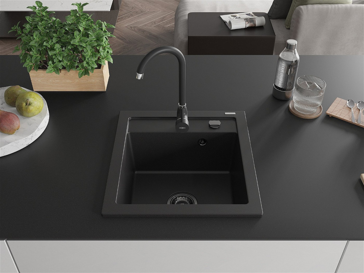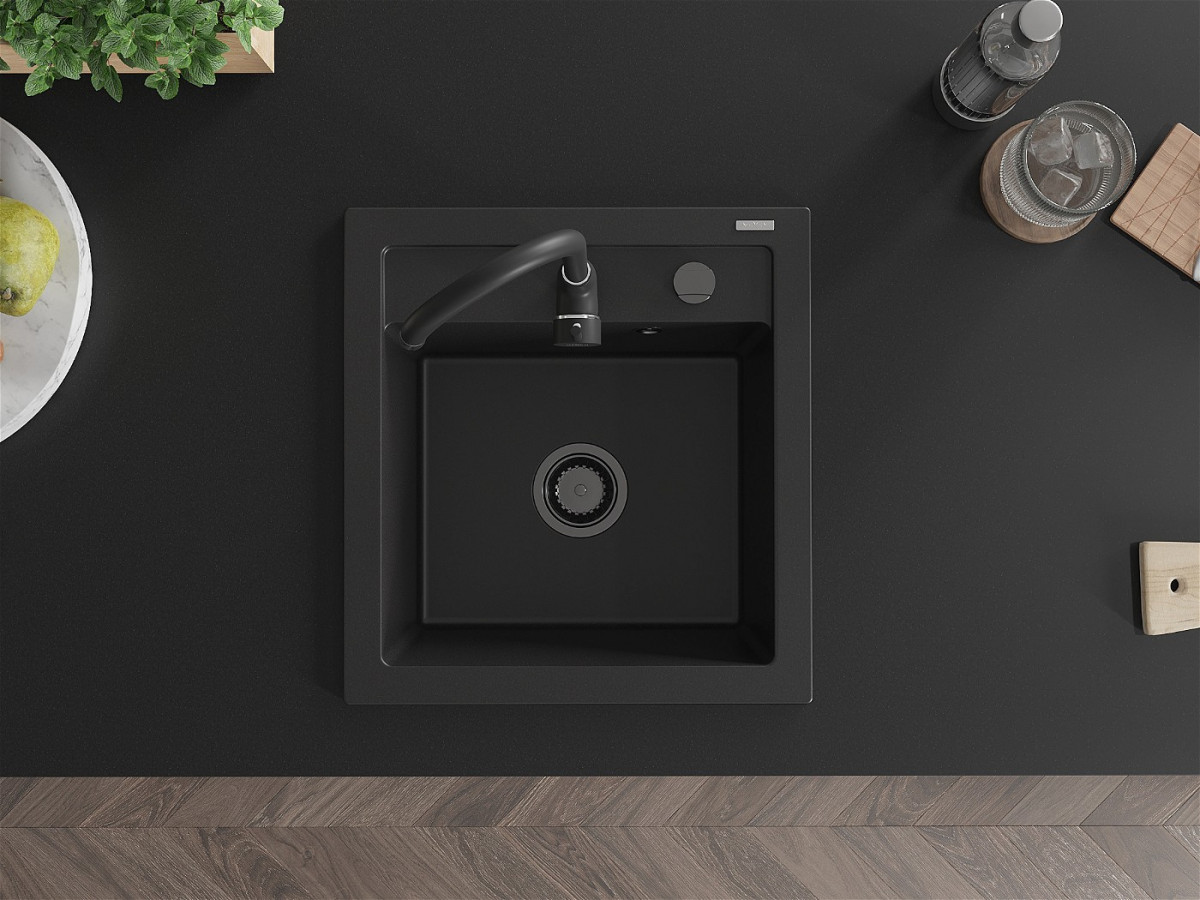 Mexen Vito Chiuveta bucatarie granit 1 cuva + cadou pop up sifon 520 x 490 mm, negru , sifon negru - 6503521000-77-B Prezentarea
