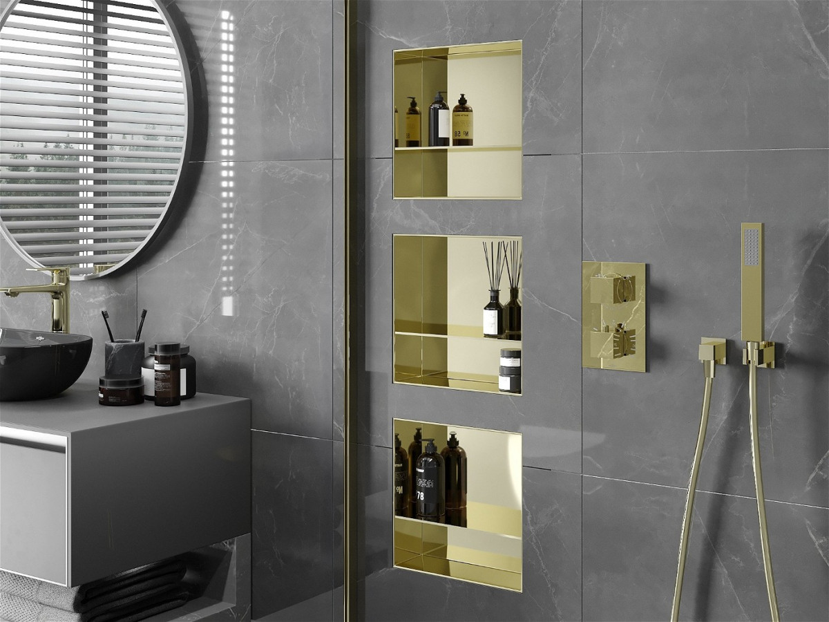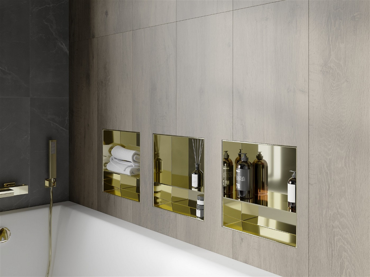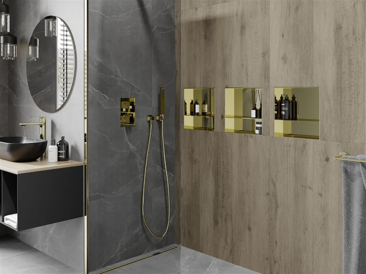 Mexen X-Wall-NR Nisa de perete cadru invelit cu raft 30 x 30 cm, auriu - 1951303010S Prezentarea