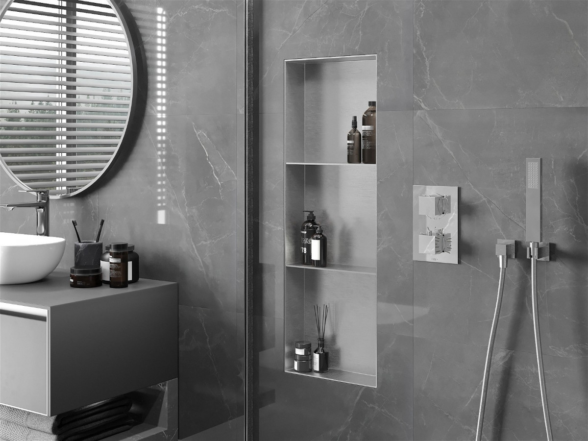 Mexen X-Wall-NR Nisa de perete cadru invelit cu raft 90 x 30 cm, inox - 1911903010S Prezentarea